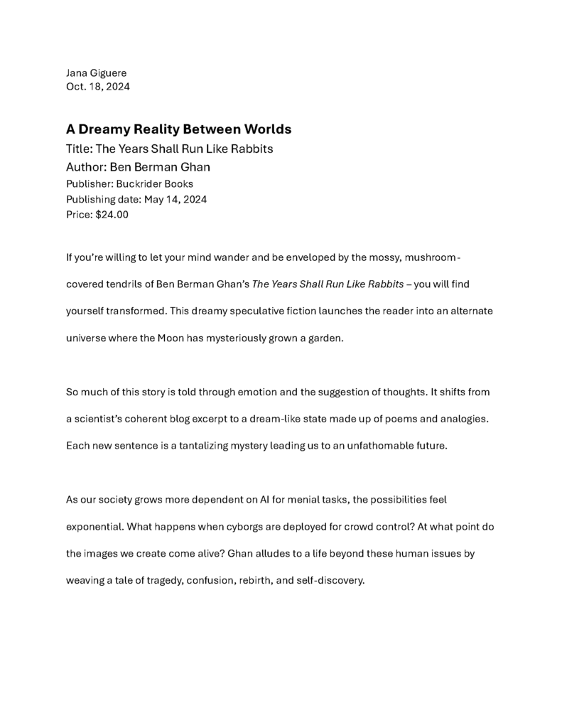 Book review for The Year Shall Run Like Rabbits by Canadian author Ben Berman Ghan.