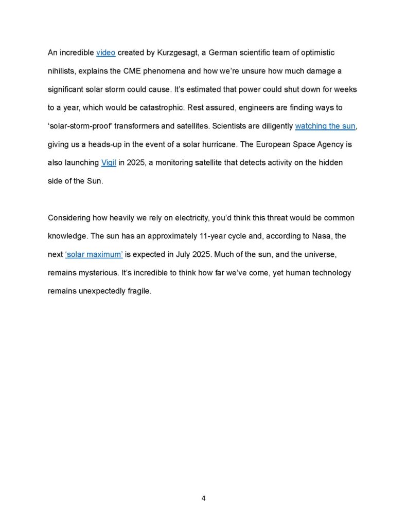 Solar Storms story abridged for July 2024 Energy Matters mail insert